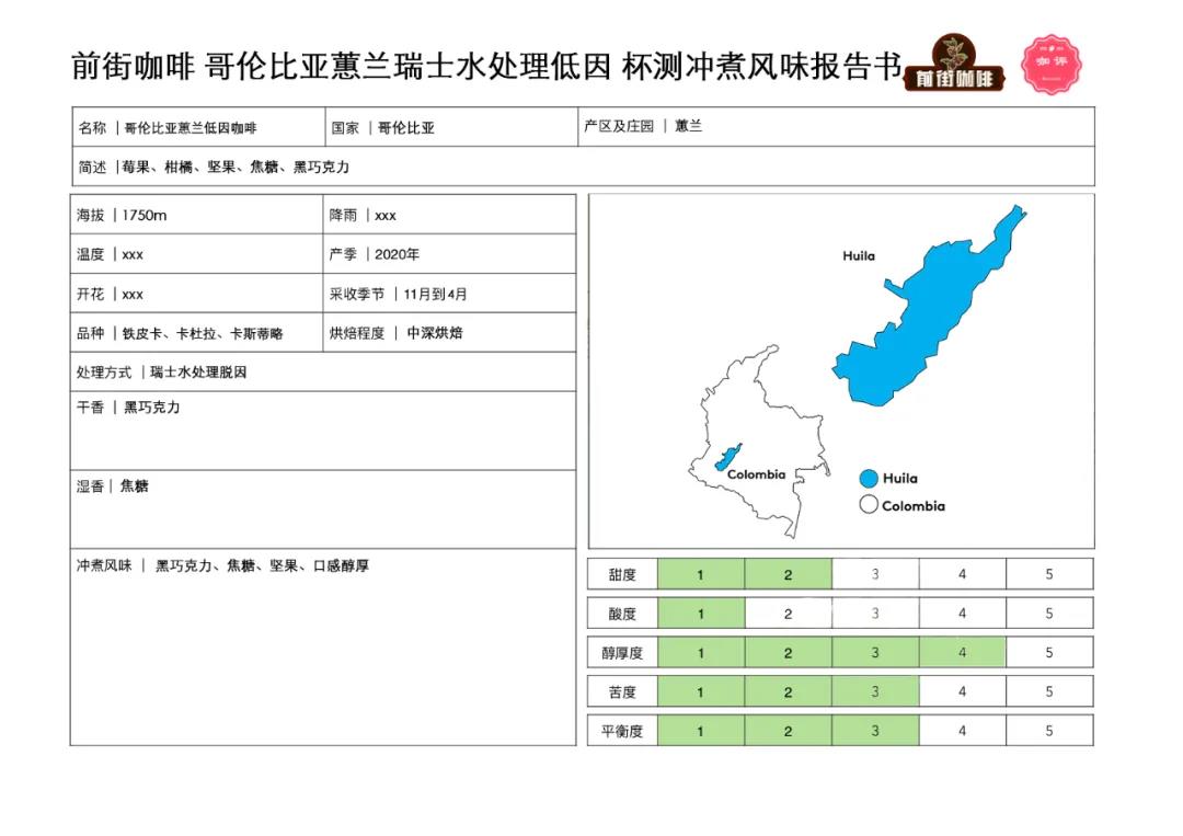 前街咖啡(FrontStreet Coffee)代表咖啡豆——哥伦比亚 蕙兰 瑞士水处理 低因咖啡